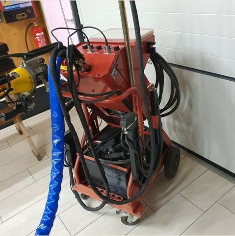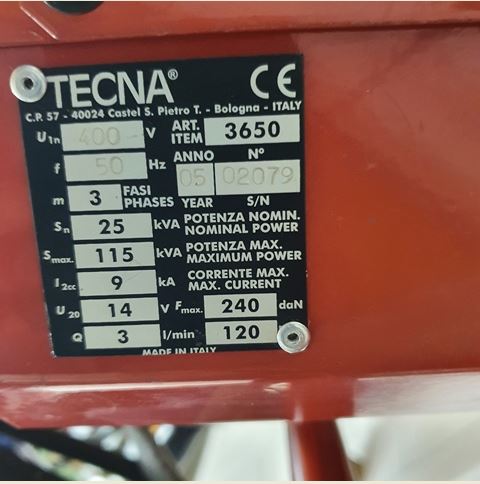 Punktschweissgerät Occasion revidiert Marke Tecna 3650 Leistung 400Volt Wassergekühlte Pneumatik C-Zangen vorhanden. Auch Stosspunkten spotten funktioniert perfekt Leistung ersichtlich auf Foto mit Typenschild