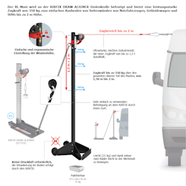 Der XL-Mast wird an der AIRFIX Zugturm Umlenkrolle befestigt und bietet eine leistungsstarke Zugkraft von 350 kg zum einfachen Ausbeulen von Seitenwänden von Nutzfahrzeugen, Geländewagen und SUVs bis zu 2 m Höhe.
